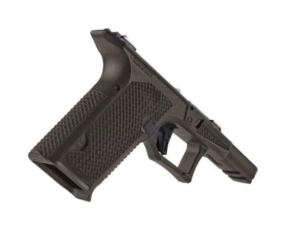 The Dusk 19 CCS frame features a 19° grip angle, improving point ability and making the handling feel more like a 1911 than a traditional GLOCK® feel. It has interchangeable flat & rounded backstraps to allow the shooter to choose their preferred choice of grip. The integrated take-down frame scallops for ease of function and the frame also includes integrated textured grip panels for an ergonomic, stable grip. The grip also includes an integrated, flared magwell with a grip textured toe kick and an enlarged trigger guard to prevent “Glock knuckle”.